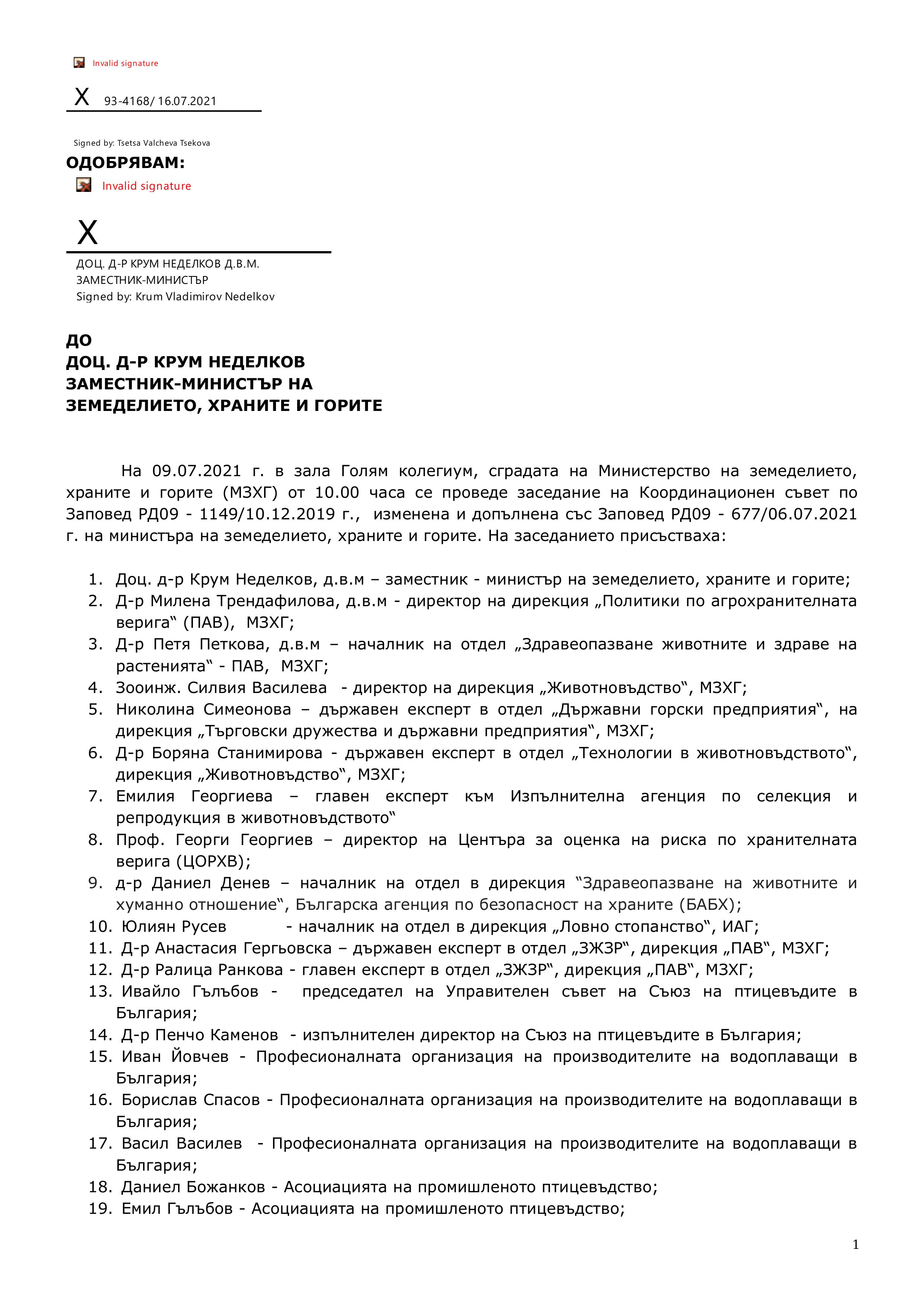 ПАМЕТНА ЗАПИСКА от 09.07.2021 г. - заседание на Координационен съвет в МЗХГ